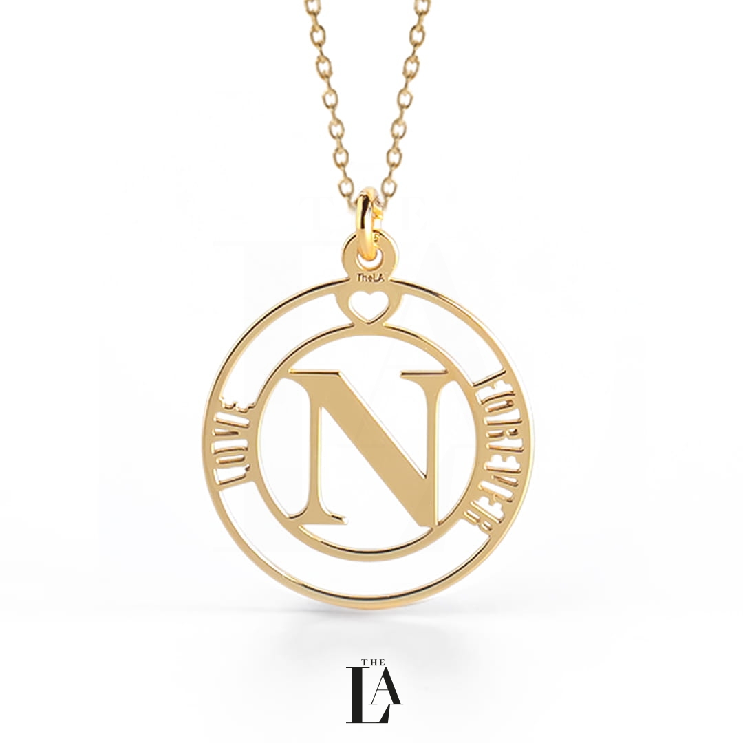Wyjątkowy naszyjnik z dowolną literką i personalizowanym dowolnym tekstem. Całość wykonana z wysokiej jakości srebra 925, które pokrywamy dwiema warstwami 18 karatowego złota.